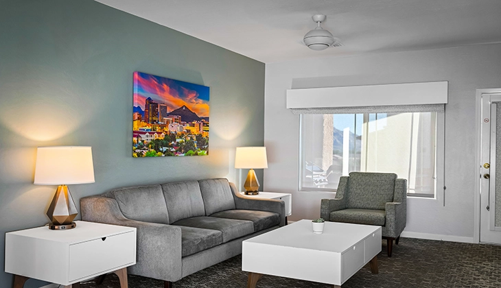 - 프런트 데스크 및 로비 운영 시간: 오전 7시 – 오후 11시. 영업 시간 이후에 도착하는 손님은 오후 11시 전에 프런트 오피스에 연락하여 락박스 코드를 받아야 합니다. 520-498-6406번으로 전화하거나 520-214-1688번으로 문자 메시지를 보내세요.